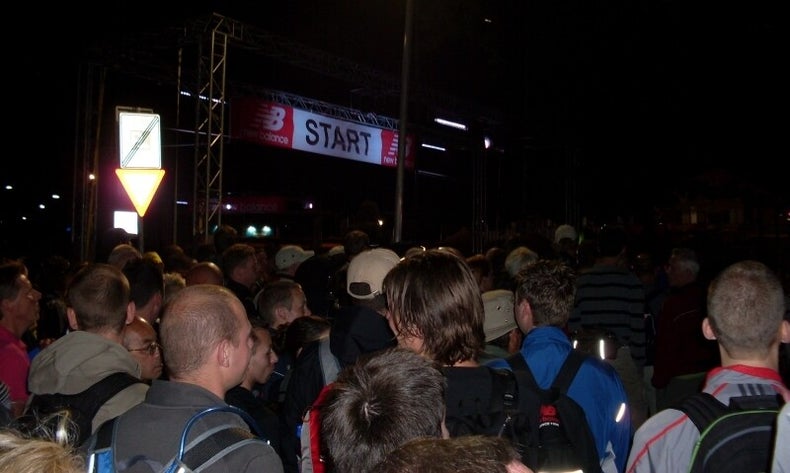 Drukte bij de start, duurde meer dan een kwartier om erdoor te komen.